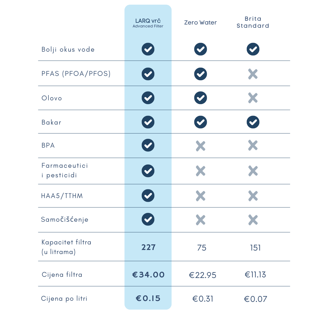 Proučite tablicu i uvjerite se da je LARQ najbolji izbor za vas!
