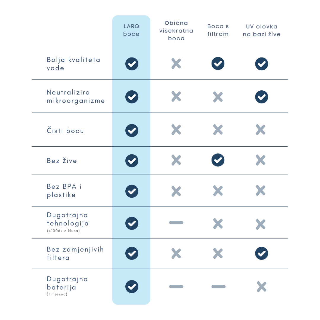 Proučite tablicu i uvjerite se da je LARQ najbolji izbor za vas!