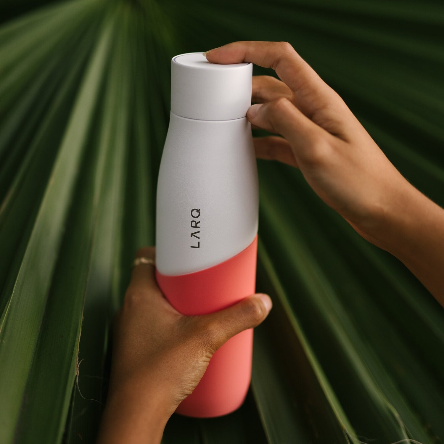 Steklenička LARQ Movement PureVis™ je prekrita s silikonskim tulcem, ki jo ščiti pred naključnimi udarci in praskami. Prevleke se prodajajo tudi ločeno v številnih sodobnih barvah. Ko želite, spremenite barvo in počutite se, kot da imate novo stekleničko !