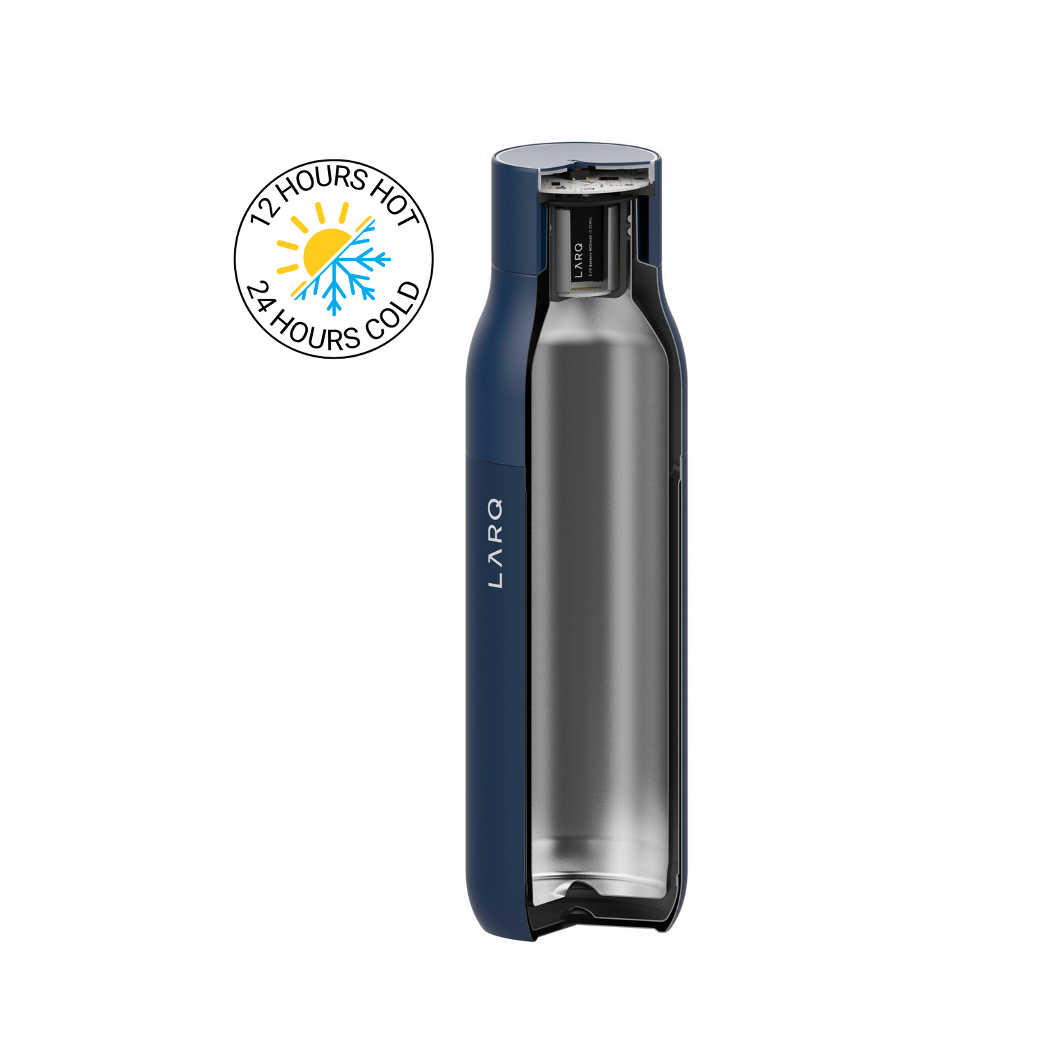 Uz LARQ PureVis™ bocu na vrući ljetni dan voda je duže hladna, a u hladno zimsko jutro vaša najdraža kava ili čaj duže su vrući. Izrađena je od izuzetno izdržljivog, dvoslojnog 18/8 nehrđajućeg čelika s vakuumskom izolacijom kako bi zadržavala toplinu 12 sati i hladnoću 24 sata.